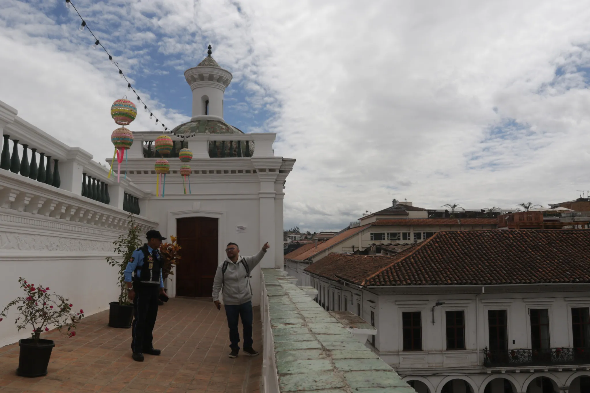 As a visitor you can access the terrace through a narrow spiral wooden staircase. From the terrace you can enjoy a beautiful panoramic view of the urban area. You'll be able to see the domes of the New Cathedral, Parque Calderón, the buildings of the Municipality of Cuenca, and the Azuay Governor's Office.