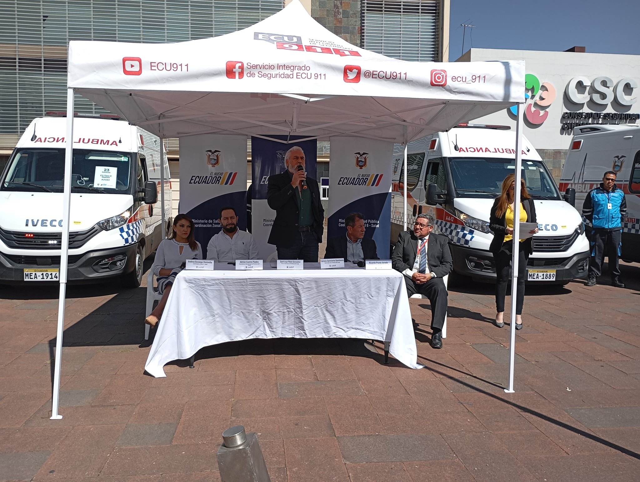 Three ambulances have been delivered to respond to emergencies in the province of Azuay. The Ministry of Health, Zone 6, made this official through an event attended by assemblyman Adrián Castro, governor Santiago Malo, and other government authorities. A total of 7 ambulances will be delivered.