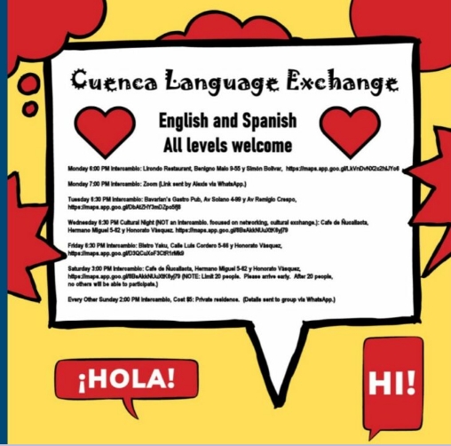 ¡Únase a The Cuenca Language Exchange, intercambio de idiomas!